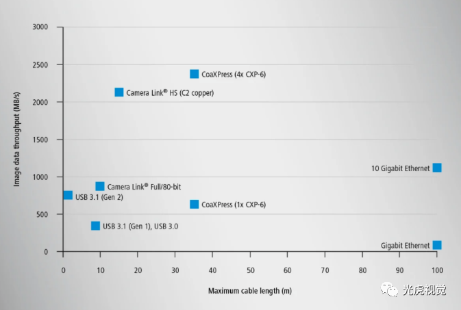 與千兆位以太網攝像機相比,10GigE攝像機顯著減少了總體系統延遲,即主機請求和響應接收之間的延遲。首先,傳感器讀取速度更快,這意味著讀取時間更短,最后10 GigE接口加快了數據傳輸速度。延遲還取決于所使用的硬件和軟件組件。與50到125μs的千兆位以太網不同,每幀的延遲降低到大約5到50μs。