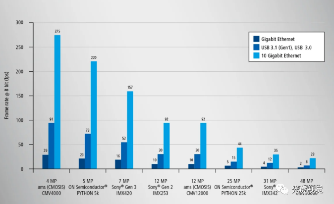 為提高相機的傳輸速率,特色產品采用了帶寬更高的10GigE技術,10GigE以太網允許以1.1 GB / s的速度傳輸10倍的圖像數據,同時提供了千兆以太網接口的所有優勢,而無需更改集成軟件。