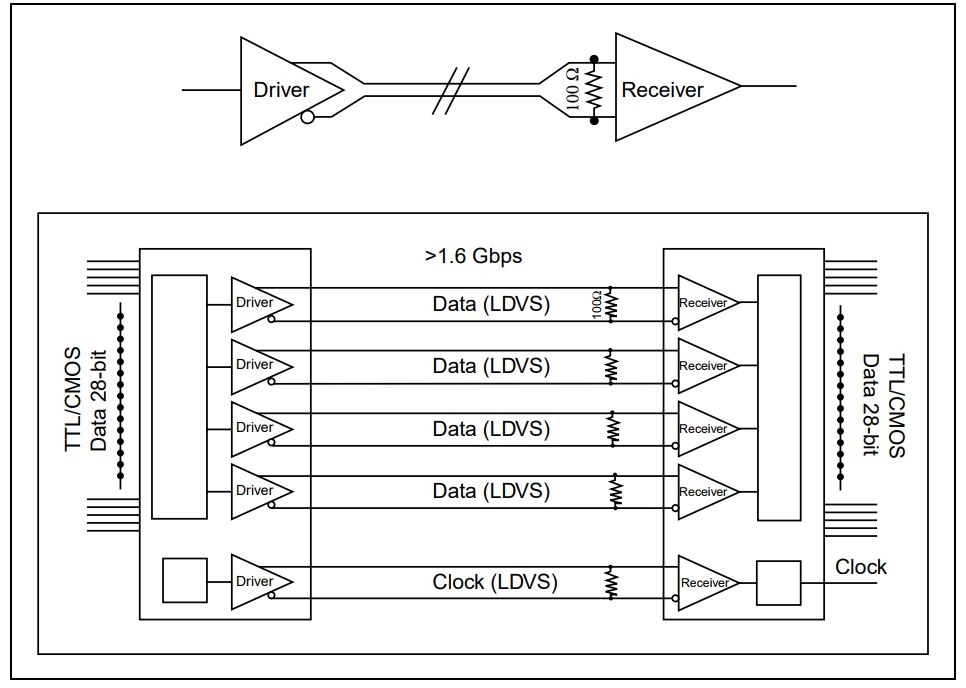 Camera Link技術(shù)標(biāo)準(zhǔn)是基于National?Semiconductor公司的Channel Link標(biāo)準(zhǔn)發(fā)展而來的,標(biāo)準(zhǔn)的Camera Link是由多路Channel Link復(fù)用而成的,不僅包含相機圖像數(shù)據(jù)信號和時鐘信號,而且還包含相機的控制信號和串行通信信號,而Channel Link標(biāo)準(zhǔn)是一種多路并行LVDS傳輸接口標(biāo)準(zhǔn)。LVDS是一種低擺幅的差分信號技術(shù),電壓擺幅在350mV左右,具有擾動小、跳變速率快的特點,在無失傳輸介質(zhì)里的理論最大傳輸速率在?1.923Gbps。