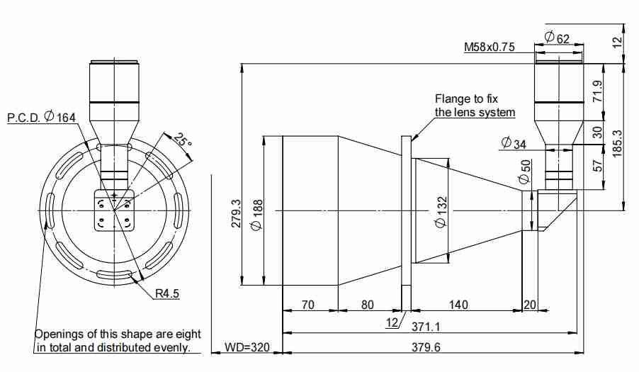 TTL44系列標準雙遠心鏡頭標準M58接口,最大兼容44mm(對角線44mm)靶面工業(yè)相機。