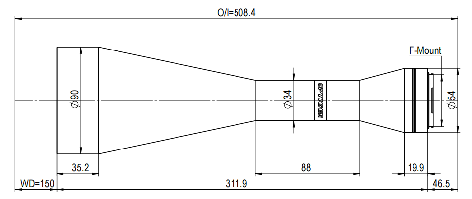TTL28.5系列標準雙遠心鏡頭標準F接口,最大兼容APS-C(對角線28.5mm)靶面工業相機。