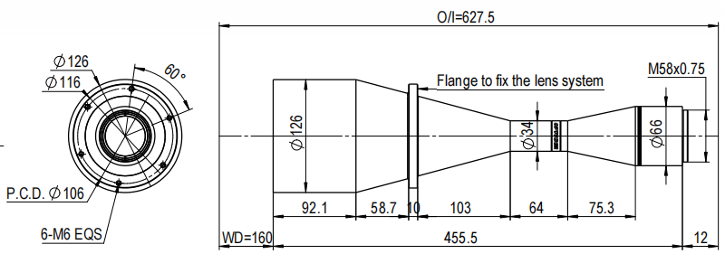 TTL39.2系列標準雙遠心鏡頭標準F接口或M58接口,最大兼容39.2mm(對角線39.2mm)靶面工業相機。